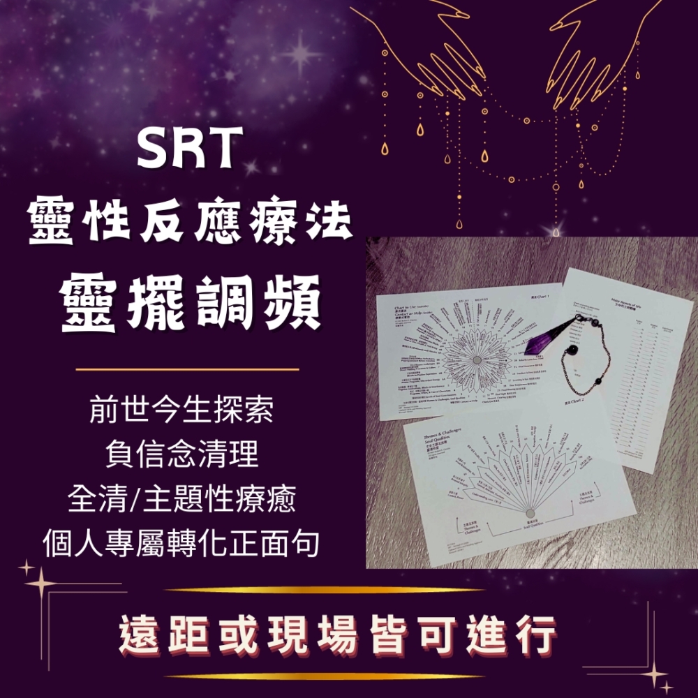 SRT前世今生靈擺靈性調頻 ▲SRT如何進行 SRT 會由執行師、執行師的高我團隊、個案本人、個案本人的高我團隊等四組成員合作,透過靈擺搭配一系列的圖表來施做靈性療癒★前世今生完整療癒全清(一生僅需清理一次,約3~4小時)與執行師和個案的高我團隊合作,清理負面信念以及累世累積下來的負面能量後,賦予轉化的新信念,初次療癒建議先施作★主題性療癒指定清理(約1.5~2小時)針對特定的主題(EX:與某人關係)或當下面對的明確問題(EX:工作瓶頸),有至少一個明確的障礙或困難,挖掘背後的成因、並且清除負面的能量,探詢改善的解方 ★下單後,請透過FB粉專、LINE或IG擇一私訊預約諮詢※如許久未回覆,有可能漏訊,可再傳訊一次或換另一處私訊,謝謝*本網頁若提及「療癒」一詞,並不具實際醫療行為,也無任何宣稱之醫療治療效果,有醫療需求者請就醫,特此聲明*